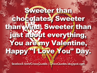 Sweeter than chocolates, Sweeter than wind, Sweeter than just about everything, You are my Valentine, Happy "I Love You" Day.